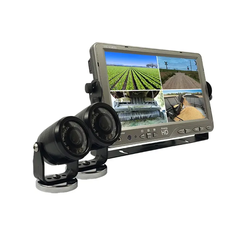 This AGCO AgCam® kit includes one (1) AHD 9″ quad monitor, two (2) AHD 92° PAL cameras, two (2) 20′ and two (2) 60′ shielded power video flex cables, and accessories.